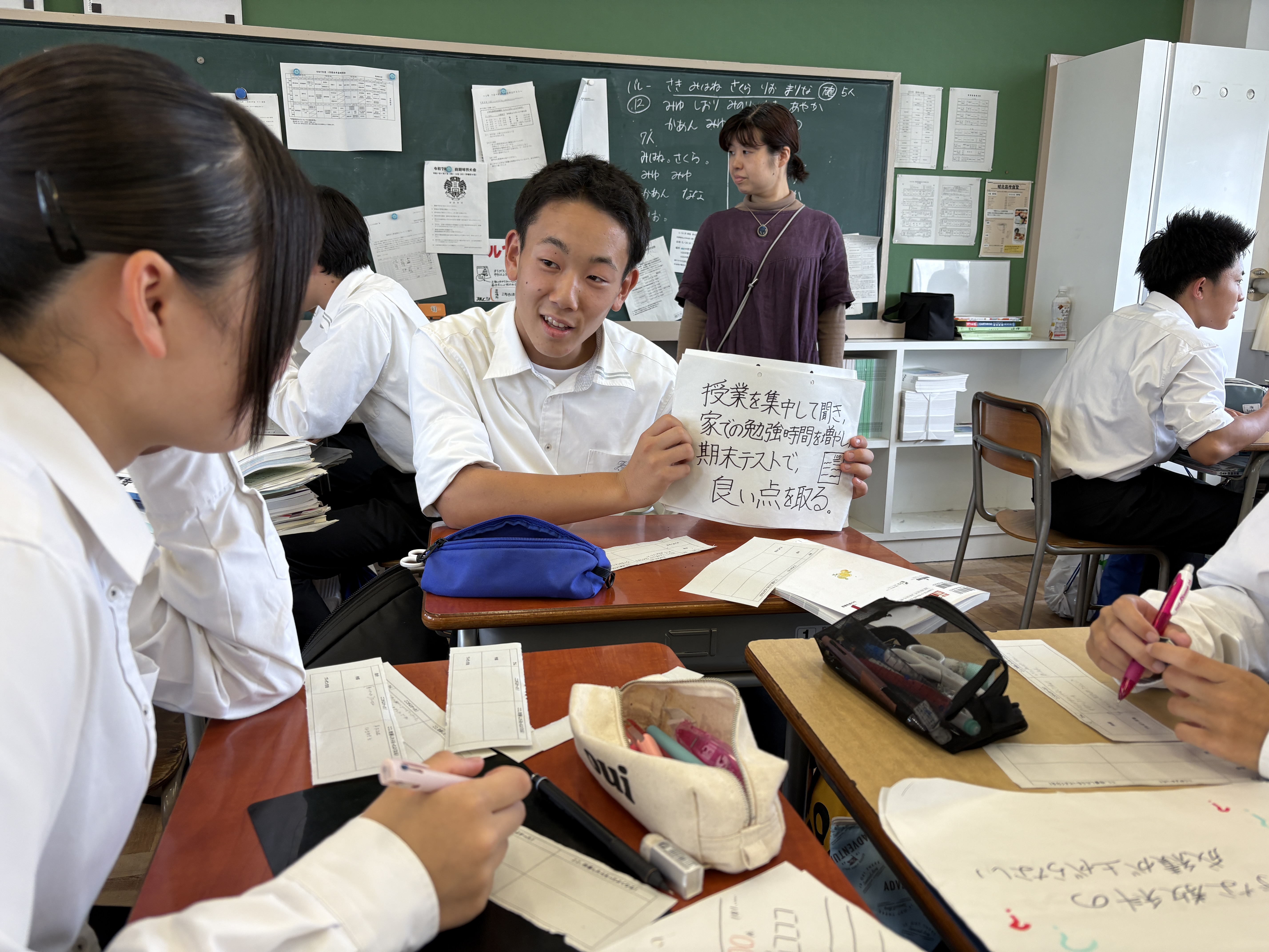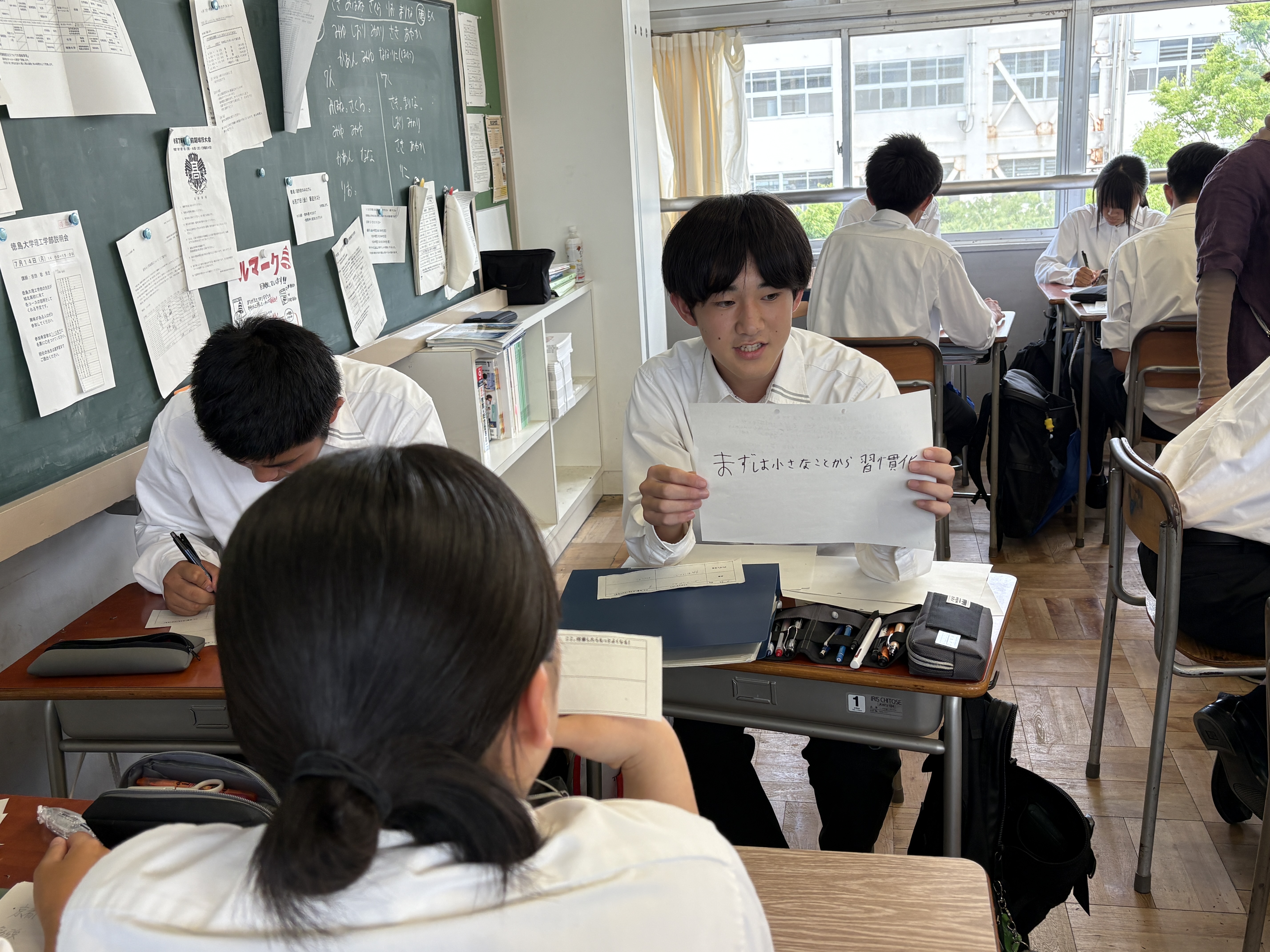 文理選択、勉強と部活動の両立、大学生活についてなど、年の近い先生からのリアルな話を、生徒たちは聞き入っていました!