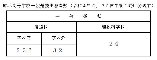 2025年11月19日 12時00分令和8年度の城北高等学校生徒募集案内(学校情報および入学者選抜情報)について、入学者選抜情報を改訂しましたので掲載します。