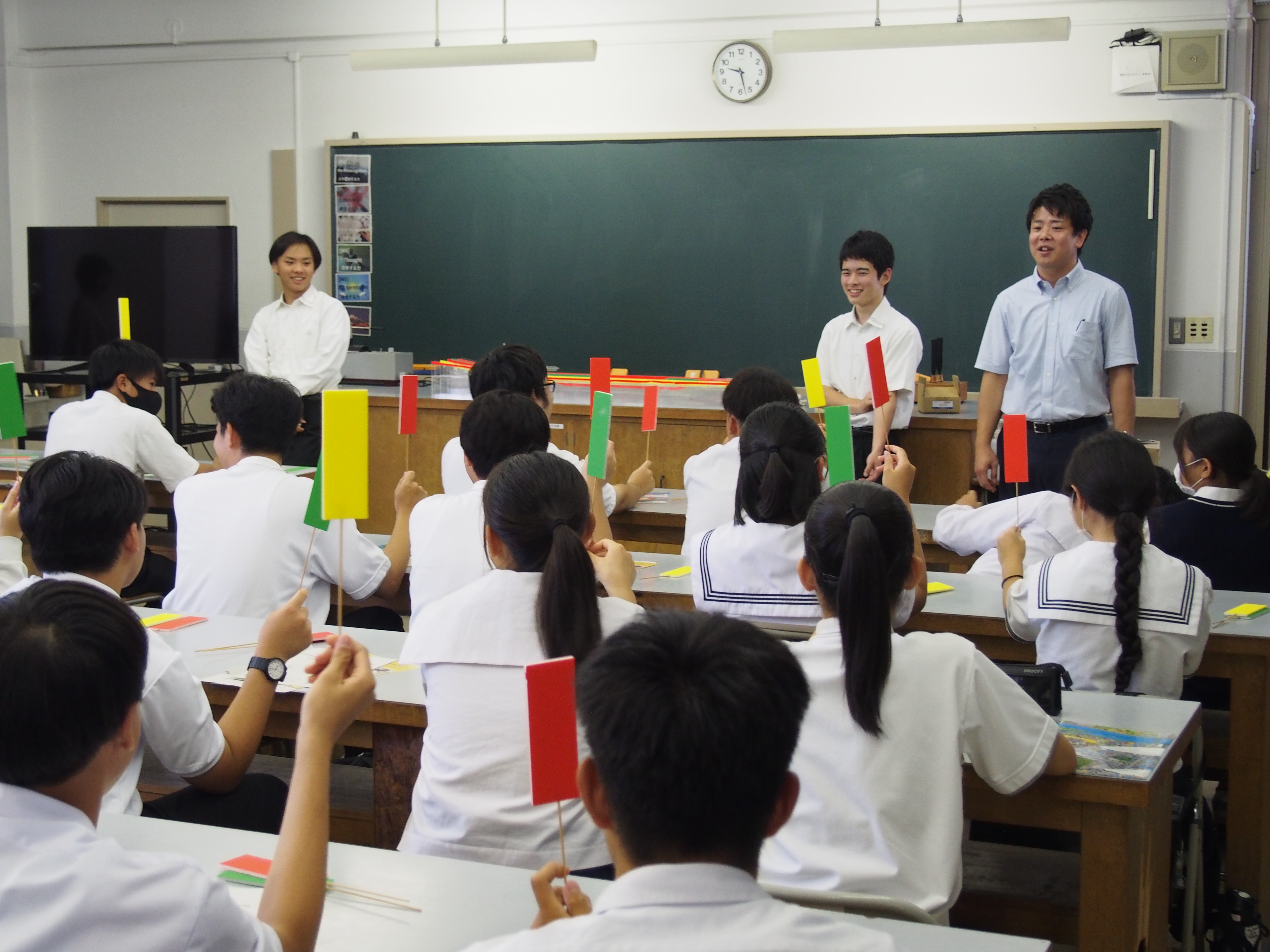 最初にオンラインにて校長挨拶があり、その後、体験授業を行いました。中学校とは違った高校での授業の雰囲気を感じていただけたと思います。