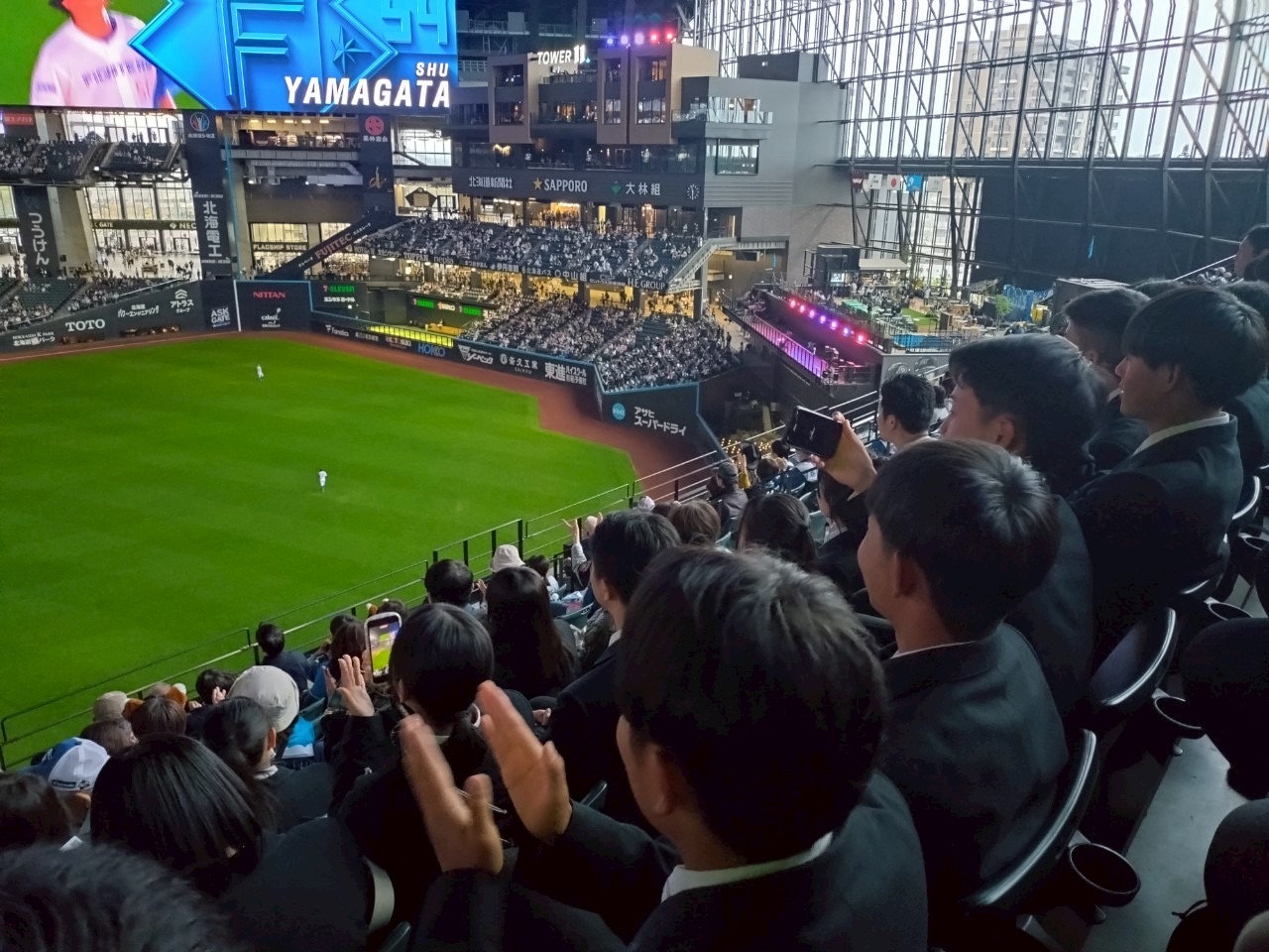 オプションとして、藻岩山での札幌夜景鑑賞とエスコンフィールドにて野球観戦に参加する生徒ともいました。