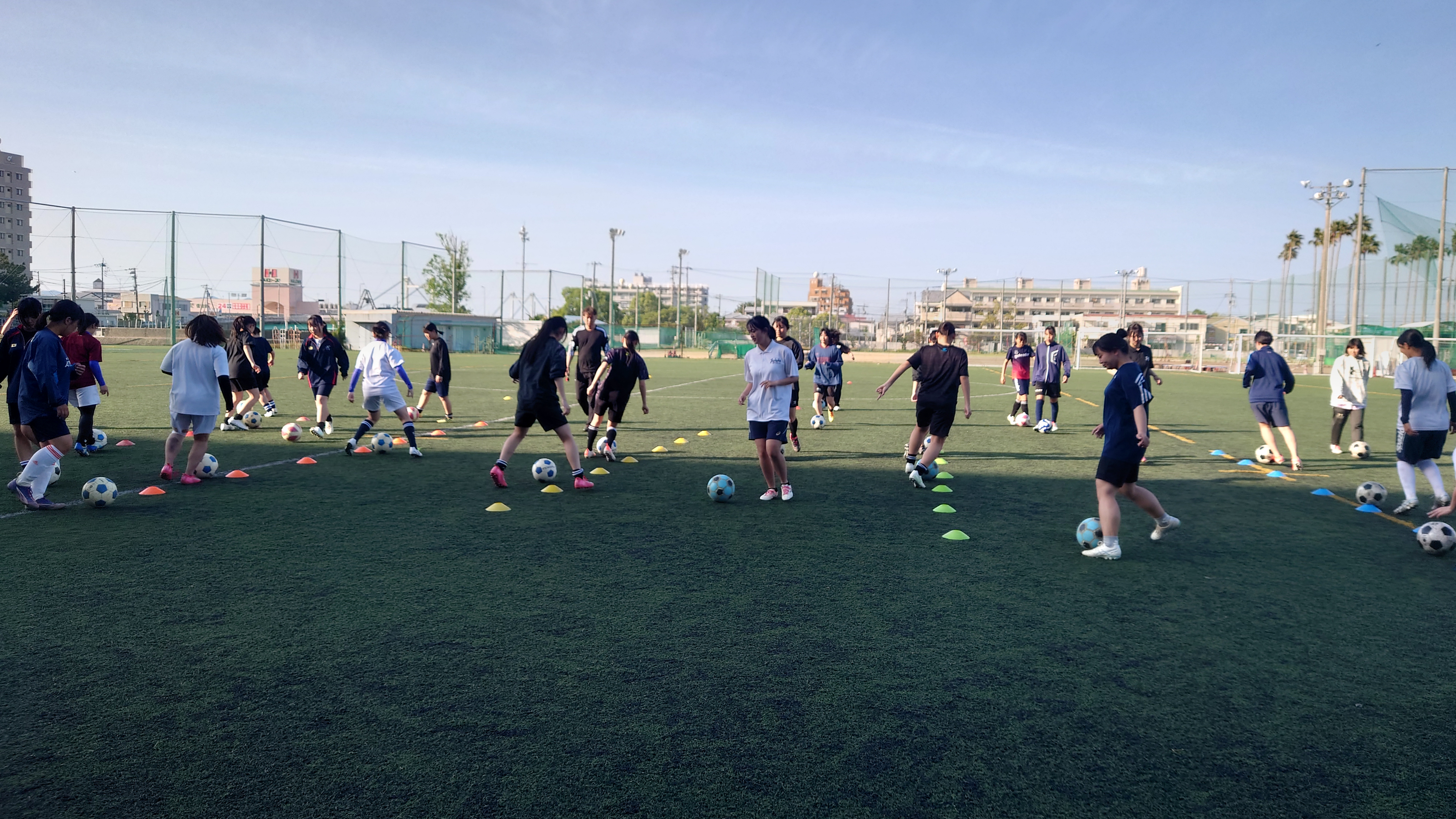 2025年5月7日 17時00分令和7年5月4日(日)16時30分から20時に徳島市立高等学校グラウンドで、県内の女子サッカー(中学生、高校生年代)の合同練習に参加しました。