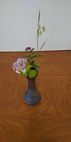 2025年6月6日 17時31分今年度も新入部員を迎え、お稽古をしています。基本のお点前である盆略点前を外部講師の先生より、ご指導いただいているところです。この日のお花は、小判草、下野草、山紫陽花です。なごやかな雰囲気のなか、おいしいお菓子とお茶をいただき、充実した時間を過ごしています。