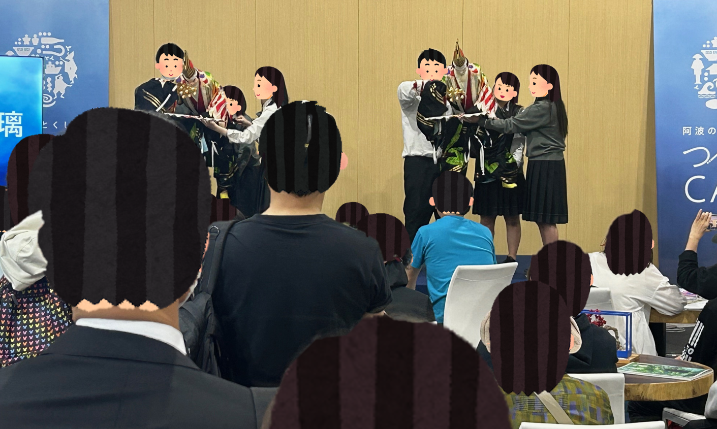 2025年5月7日 11時52分5月3日、民芸部は卒業生による青年座さんとポラリス座とともに大阪・関西万博で4月30日から開催されていた徳島県イベント「つむぐCAFE」での人形浄瑠璃公演最終日(30日から2日までは先に現地入りしていた卒業生2座が担当)に参加しました。