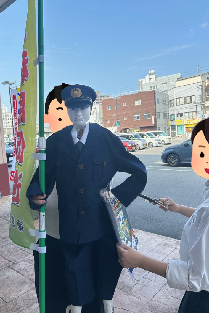 2025年7月9日 14時09分7月8日(火)、徳島県警交通企画課とのコラボレーションで、近くのスーパーで行われた交通安全キャンペーンに参加させていただきました。警官人形の「さくら」と「まもる」、おつるの三体を遣い、自転車のヘルメット着用や、徳島スマートドライバーセーフティラリーなどについてのチラシといった啓発グッズの配布をお手伝いさせていただきました。