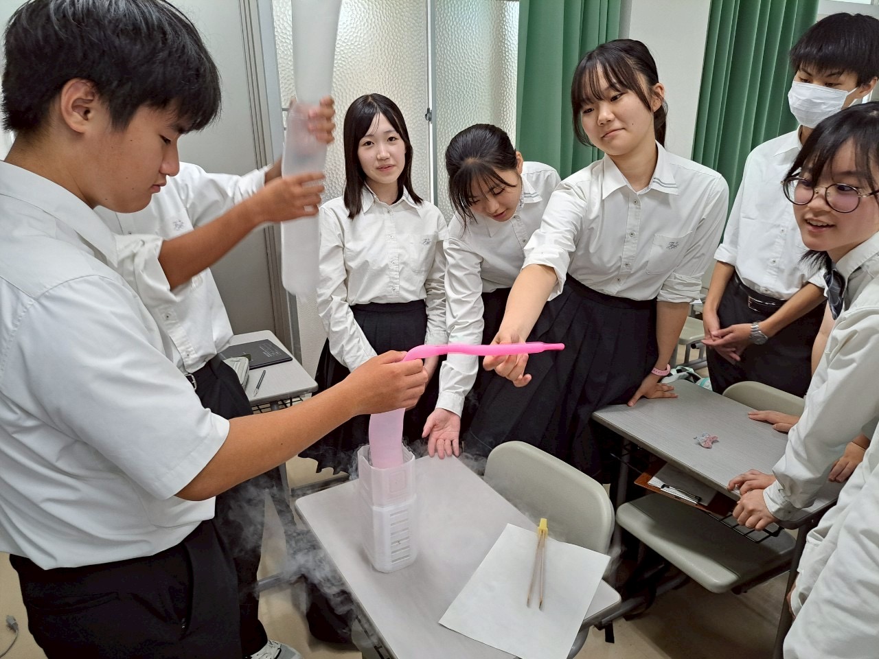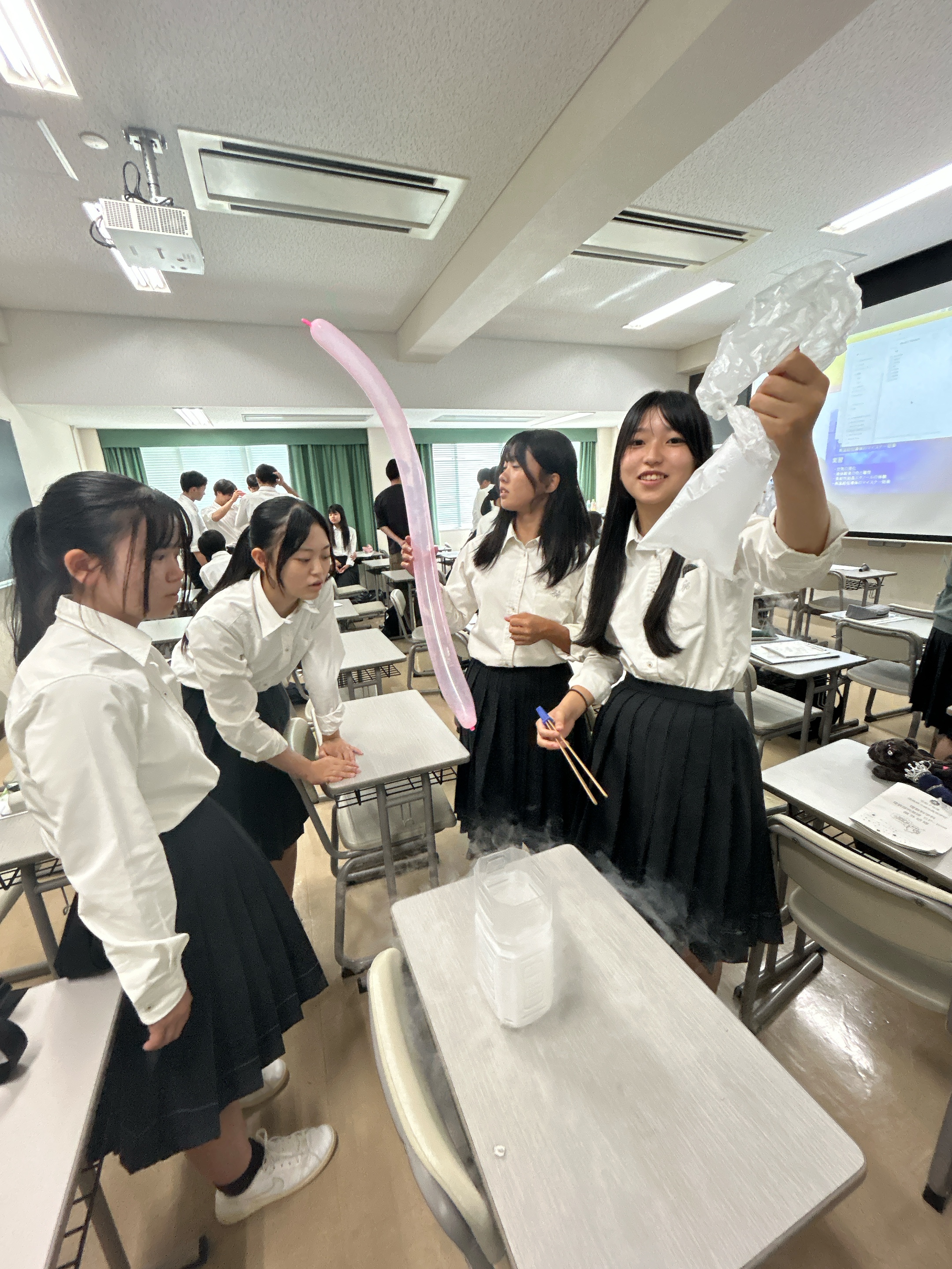 液体窒素中に風船を入れて、風船の中の空気が液化する様子も観察し、楽しく学ぶことができました。