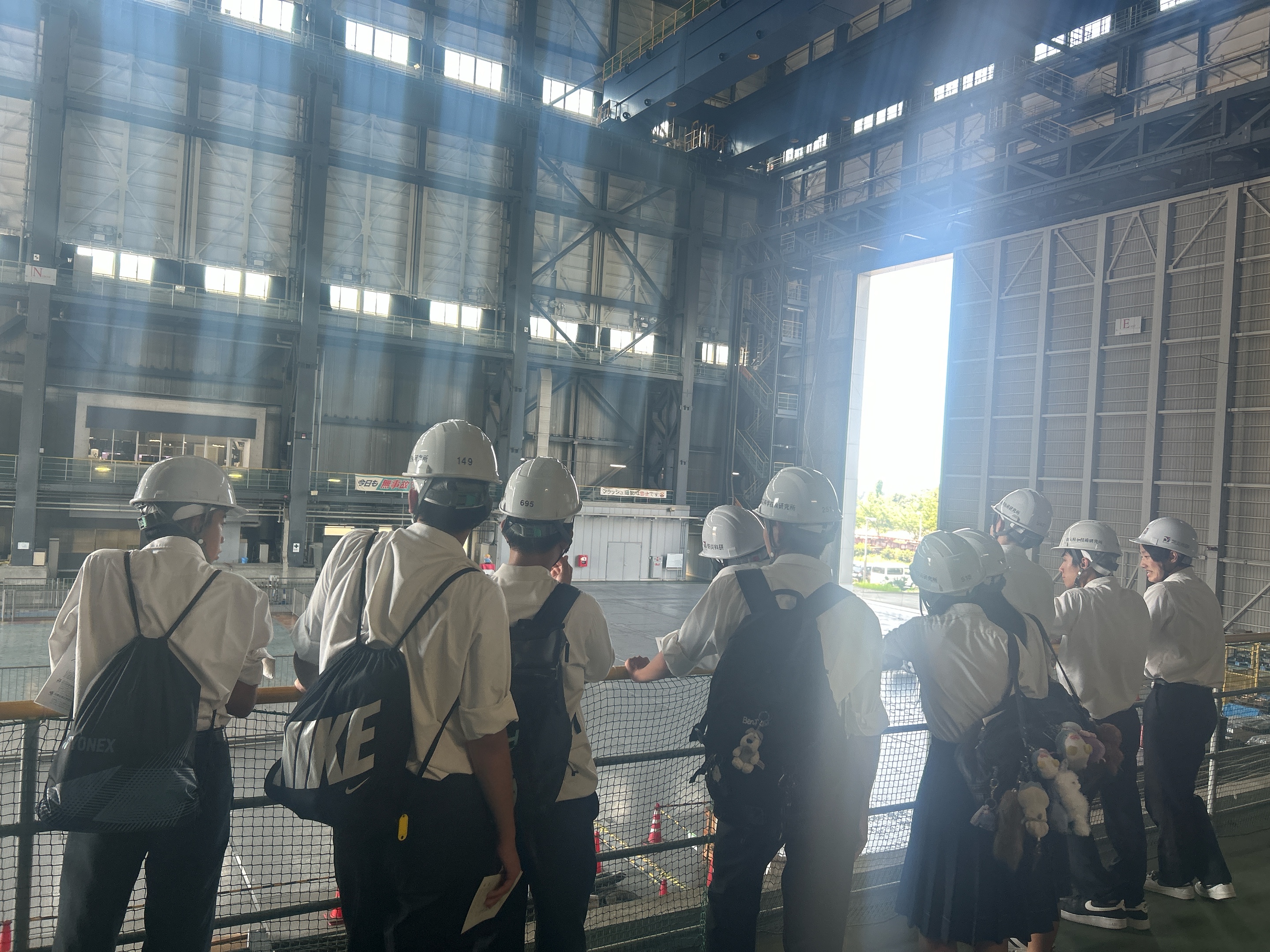 こちらではヘルメットを装着して実大三次元振動破壊実験施設を見学しました。