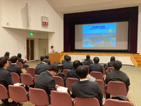 大学の先生や本校教員と1年生の前で、スライドを用いての発表でした。