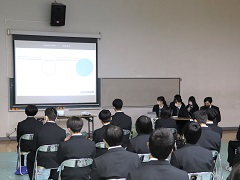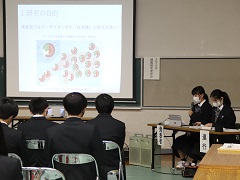 次年度に行う課題研究でチームを組む8班が研究テーマの概要や実験計画を発表し、大学の先生方から指導や助言を受けました。