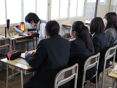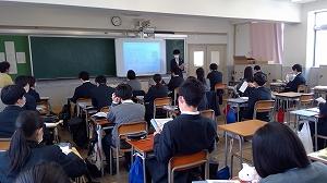 「分子」には「働き(機能)」をもっていろいろな作用をする分子があることや,その「働き」を阻止する分子も存在することを学びました。新しく発見した分子に徳島に関係した名前をつけたお話などとてもおもしろい内容で生徒もどんどん引き込まれました。